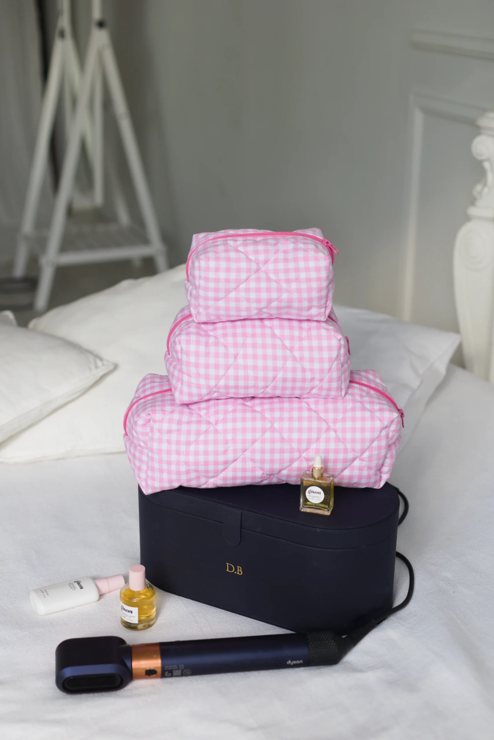 Косметичка Mysa medium в рожеву клітинку (24см / 17см / 10см)
