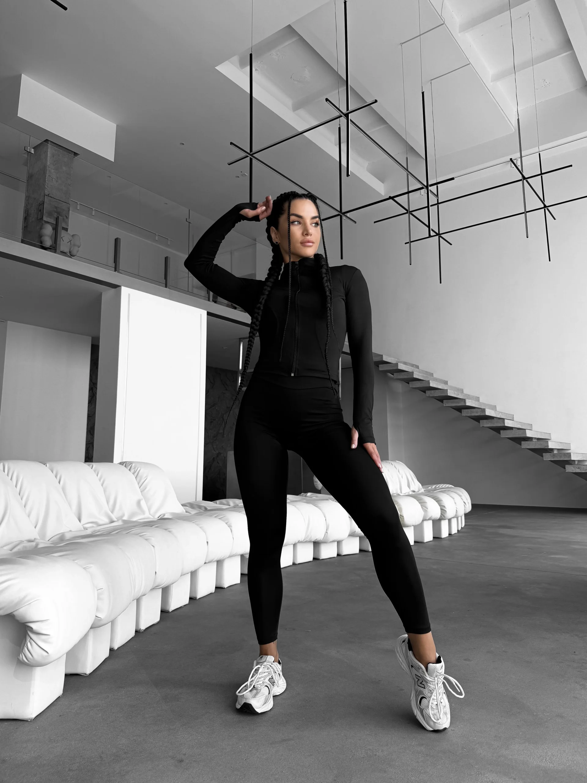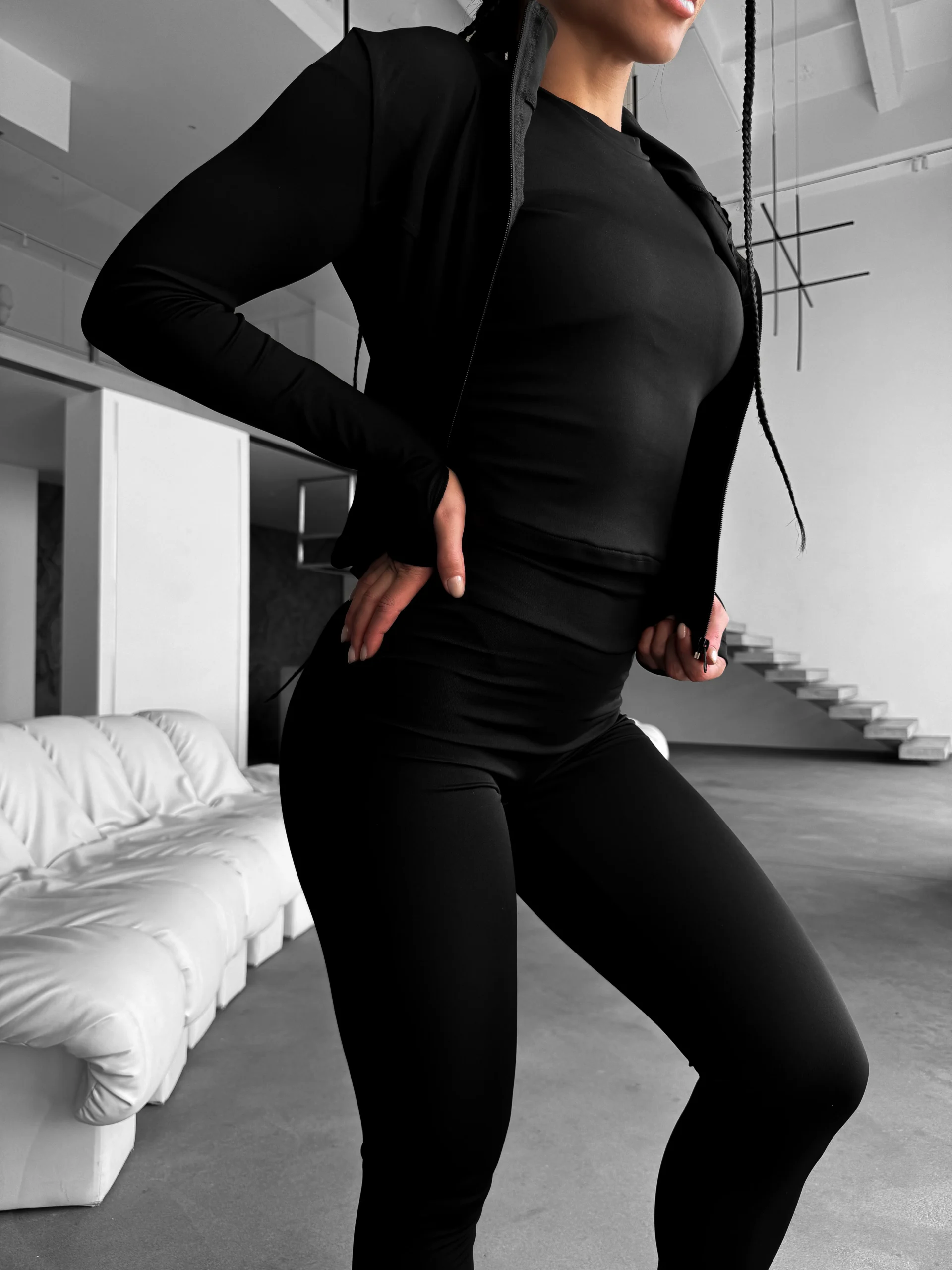 Завжди актуальне, практичне та стильне поєднання. Чорний колір — це незмінна класика, яка підкреслює впевненість та виглядає бездоганно в будь-якій ситуації. Цей комплект створений для тих, хто цінує функціональність та бажає виглядати витончено як під час тренування, так і на прогулянці.